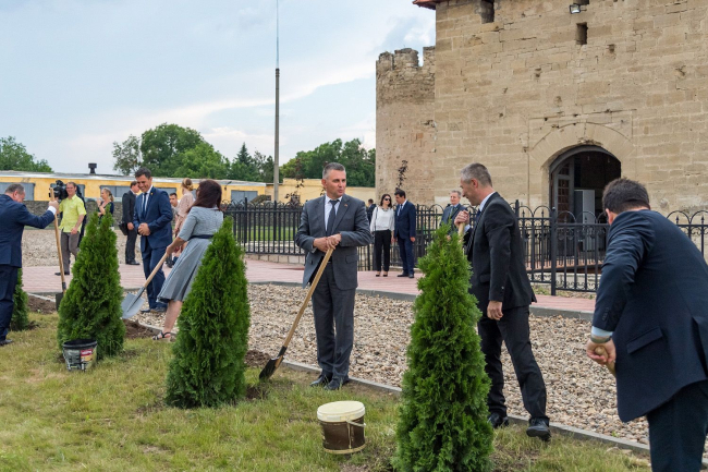Еще одна творческая составляющая общественно-культурного мероприятия «Мир во имя будущего» – выступление Приднестровского государственного хора (художественный руководитель Татьяна Твердохлебова). Вокалисты исполнили программу под сводами храма Александра Невского. Затем хозяева встречи проводили представителей дипмиссий в цитадель Бендерской крепости, рассказав историю этого уникального с исторической точки зрения объекта. Финальной точкой мероприятия стала закладка Аллеи Мира.
