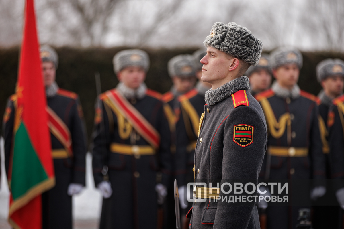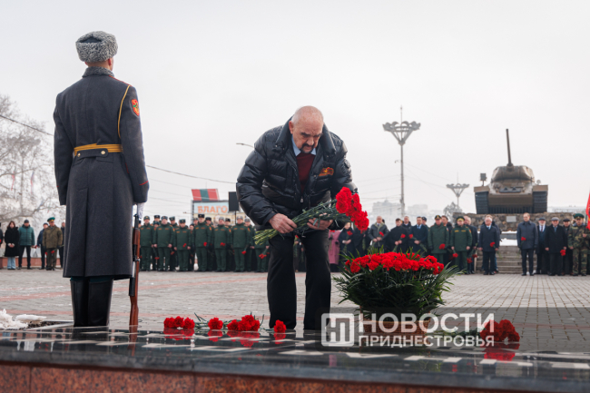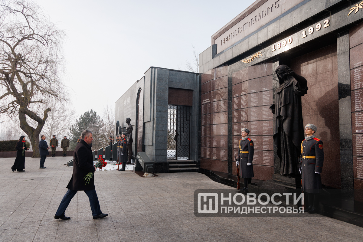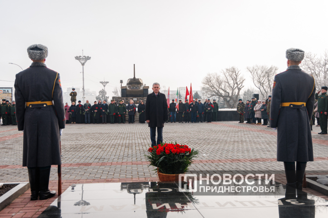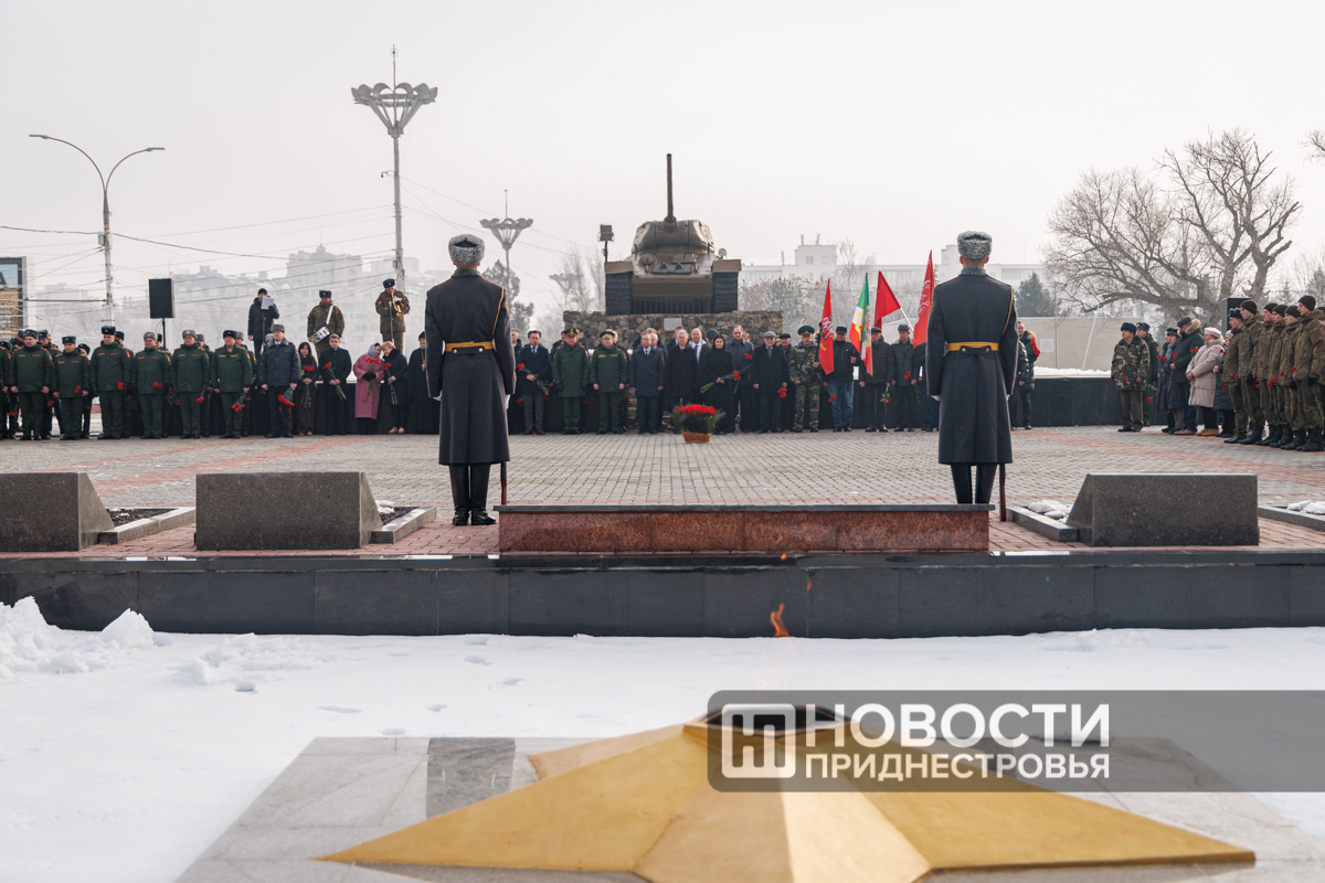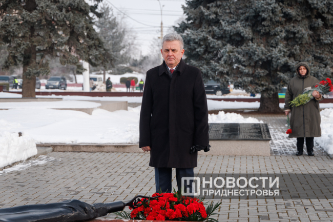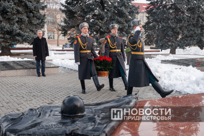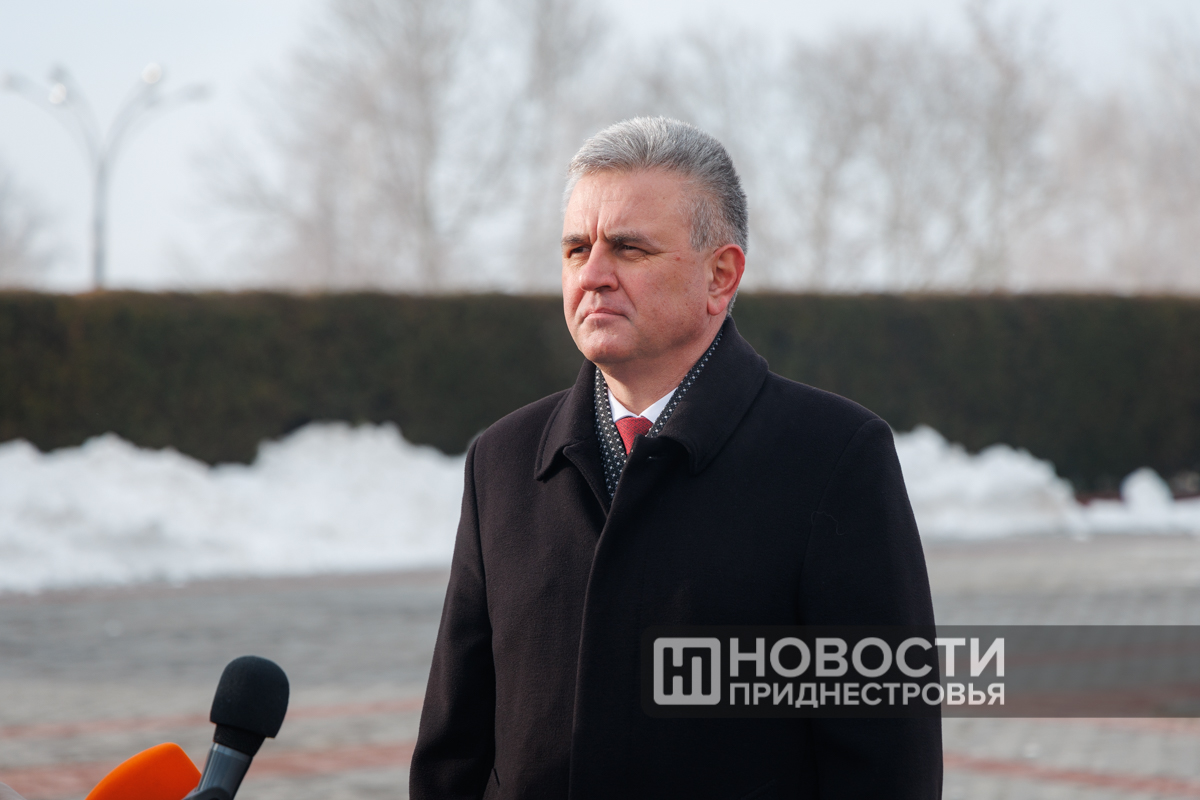 Тирасполь, 23 февраля. /Новости Приднестровья/. Президент ПМР Вадим Красносельский принял участие в церемонии возложения венков и цветов к Вечному огню, могильным плитам и постаментам памятников на столичном Мемориале славы, сообщает пресс-служба главы государства.