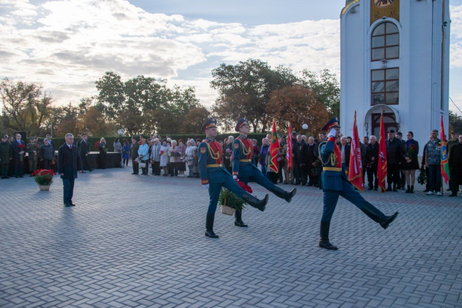 Глава государства, руководство органов власти, жители и гости города почтили минутой молчания память воинов, павших при защите Тирасполя в разные исторические периоды.