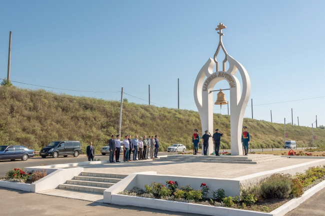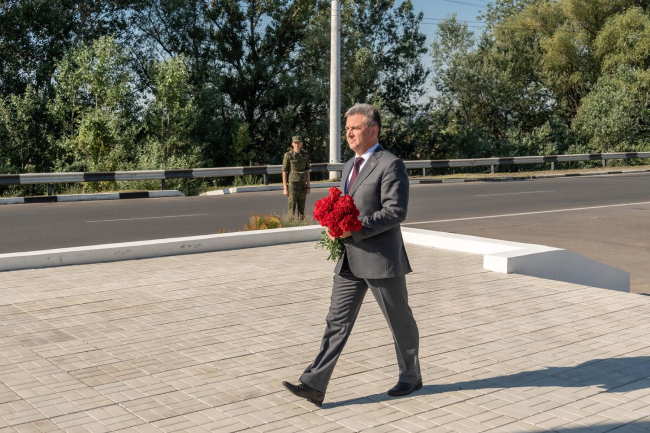 Глава приднестровского государства опустил гвоздики к подножию Арки Мира «Блаженны миротворцы». Она была установлена в 2017 году между Тирасполем и Бендерами. Считается, что сквозь крылья, увенчанные православным крестом, проходит дорога мира, а колокол, расположенный внутри арки, символизирует течение времени. О том, что время не властно над памятью благодарных приднестровцев, говорил сегодня Вадим Красносельский.