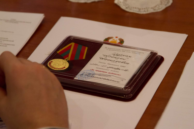 Тирасполь, 27 декабря. /Новости Приднестровья/. Заместитель председателя Правительства Алексей Цуркан удостоен медали «За трудовую доблесть». Награду на сегодняшнем заседании президиума Правительства вручил руководитель Администрации Президента Сергей Белоус.