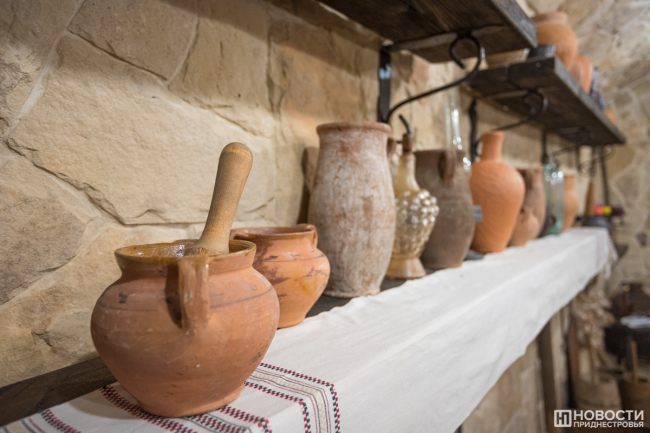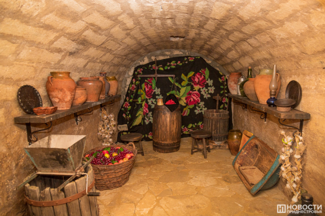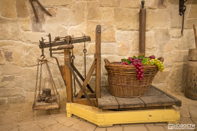 Специалисты обследовали и выяснили, что это большой подвал. Было решено реконструировать – но только его часть, самую безопасную. Для придания атмосферности собрали несколько аутентичную утварь: тяски и прессы, коллекцию старинных кувшинов и горшков, весы столетней давности, керосинки и прочие предметы быта и виноделия. А на стенах – фотографии Бендер начала 20-го века.