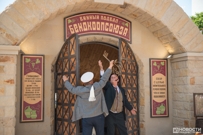 Бендеры, 2 июня. /Новости Приднестровья/. В Бендерах сегодня открыли новый туристический объект – старинный винный подвал. Он находится в самом центре города. Открывали торжественно: с цыганами, молдавскими и еврейскими танцами, а также духовым оркестром. Но главными героями праздника были всё же Ося Бендер и Киса Воробьянинов. Сын турецкоподданного (вспоминаем, из какого языка пришло название «Бендеры»), а также бывший предводитель дворянства зазывали гостей и рассказывали, что интересного их ждёт в подвале Бендкоопсоюза. Само название тоже отсылало к похождениям знаменитых героев Ильфа и Петрова. Равно как и сеанс одновременной игры в шахматы, организованный рядом с подвалом.