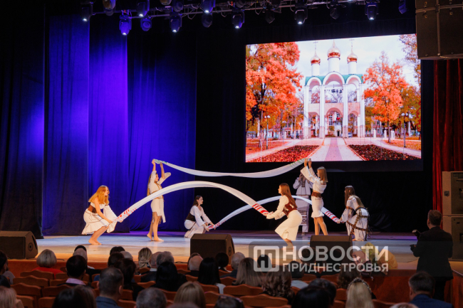 Приднестровский народный колорит на сцене представили танцоры Приднестровского государственного института искусств имени А. Г. Рубинштейна.