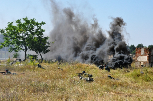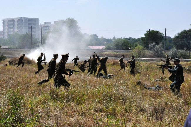 Сегодня на пустыре вблизи столичного микрорайона Западного представители военно-патриотического клуба «Наследники Победы» для многочисленных зрителей и почётных гостей (представителей «Россотрудничества» и Оперативной группы российских войск в ПМР) провели военную реконструкцию, приуроченную к началу Ясско-Кишинёвской операции.