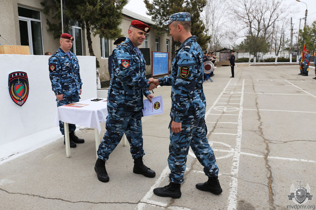 Тирасполь, 26 марта. /Новости Приднестровья/. Военнослужащие Специальной моторизованной части МВД отметили День внутренних войск, сообщает пресс-служба ведомства. По случаю праздника за добросовестное исполнение обязанностей, профессионализм и достижение высоких результатов отличившимся присвоили воинские звания и вручили ведомственные награды.