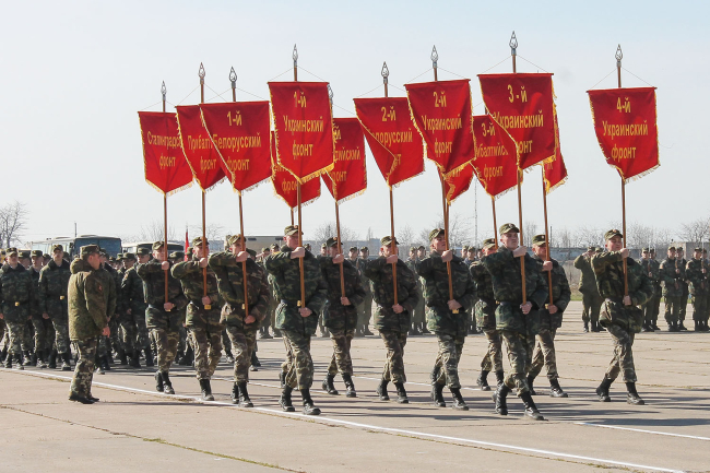 Тирасполь, 4 апреля. /Новости Приднестровья/. Более 600 военнослужащих Тираспольского гарнизона готовятся к параду Победы. В составе пеших расчетов – представители силовых министерств и ведомств республики, а также бойцы Оперативной группы российских войск в Приднестровье. Ход подготовки военнослужащих сегодня проконтролировал начальник Главного штаба Вооруженных сил полковник Сергей Герасютенко.