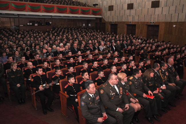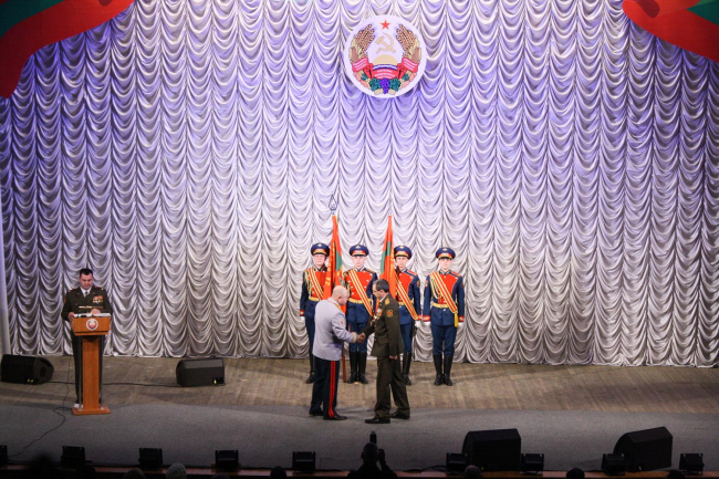 Тирасполь, 22 февраля. /Новости Приднестровья/. В большом зале Дворца Республики прошли торжественное собрание и праздничный концерт, посвящённые 100-летию создания Рабоче-крестьянской Красной Армии и Дню защитника Отечества.