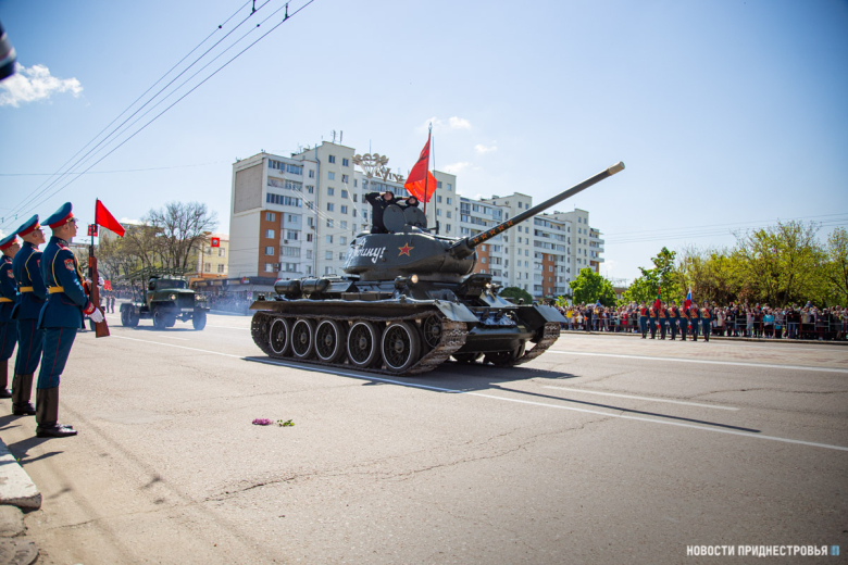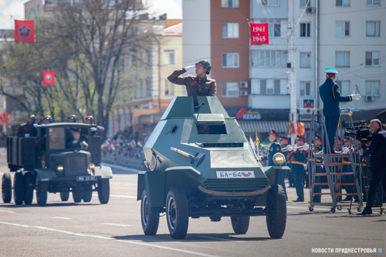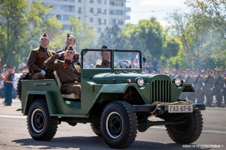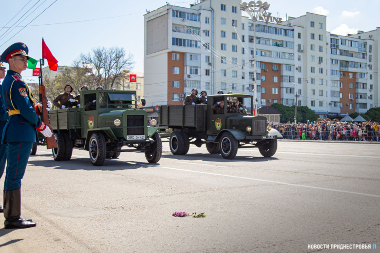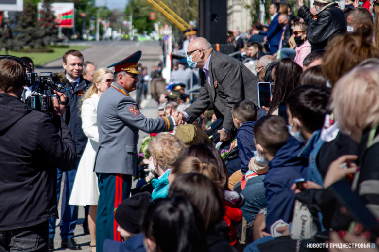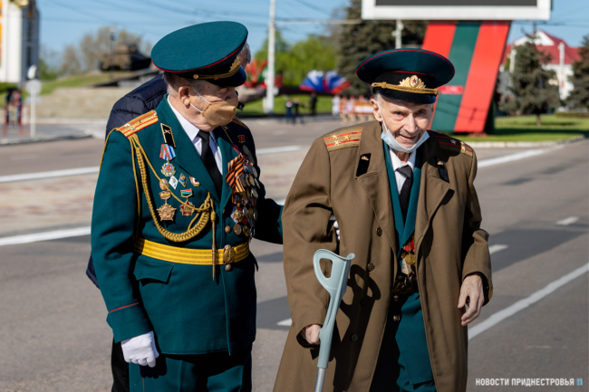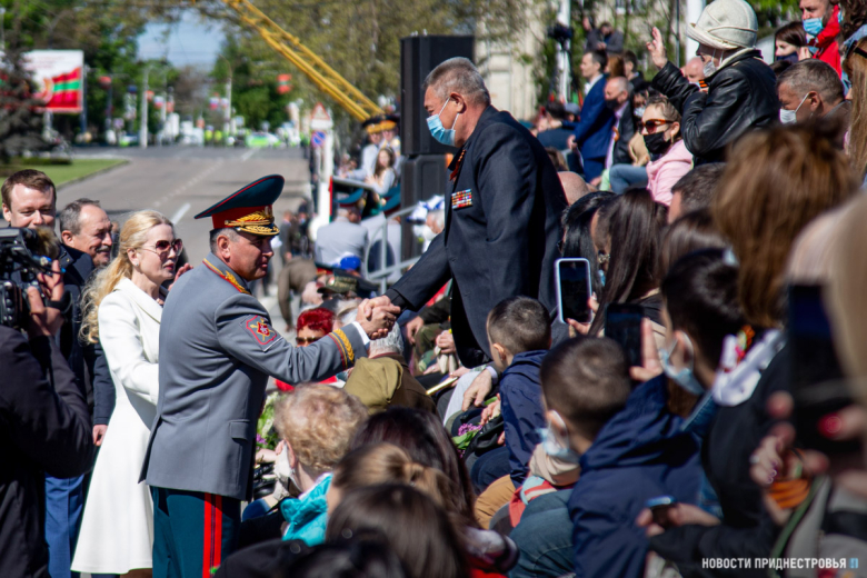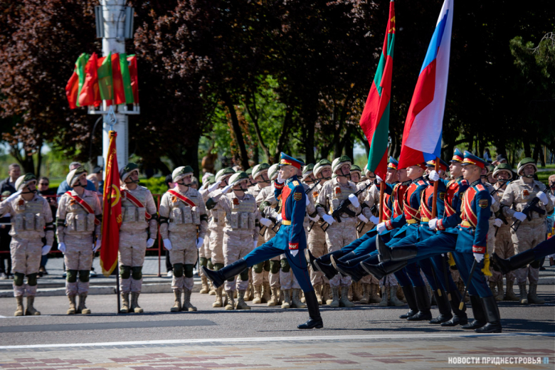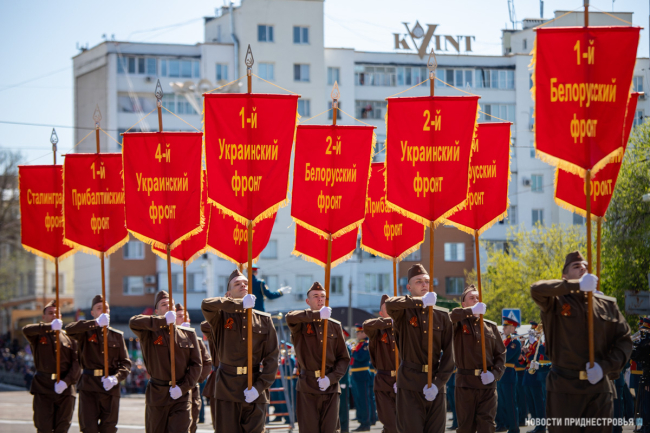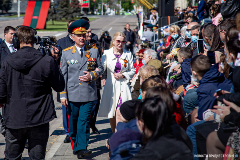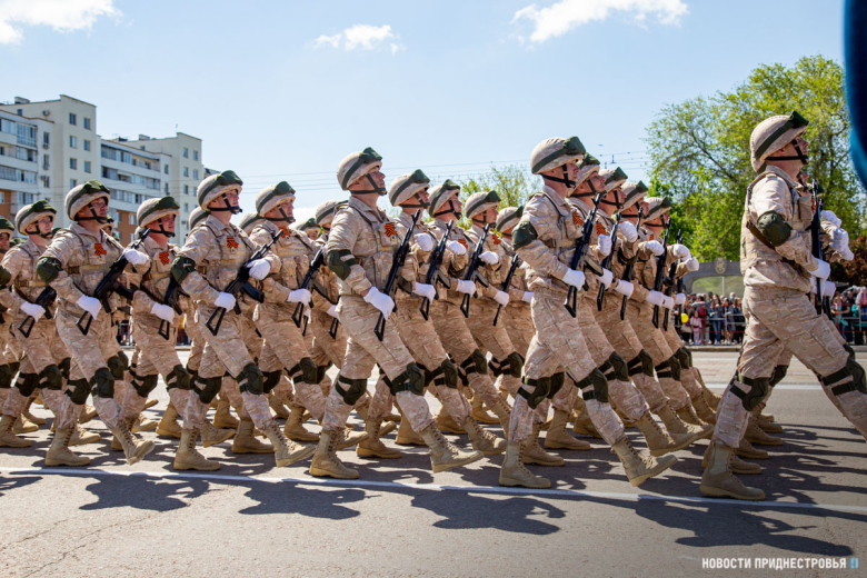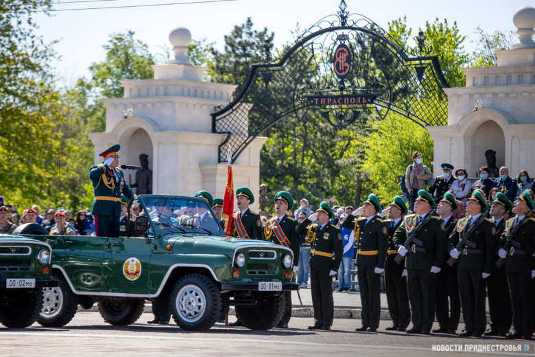 За ними строевым шагом прошли военнослужащие Вооружённых сил ПМР, Пограничного управления МГБ, МВД и подразделений Оперативной группы российских войск в Приднестровье, парадный расчет курсантов Военного института Министерства обороны в форме времен Великой Отечественной войны, а также будущие защитники Отечества – учащиеся Республиканского кадетского корпуса и Тираспольского Суворовского военного училища.