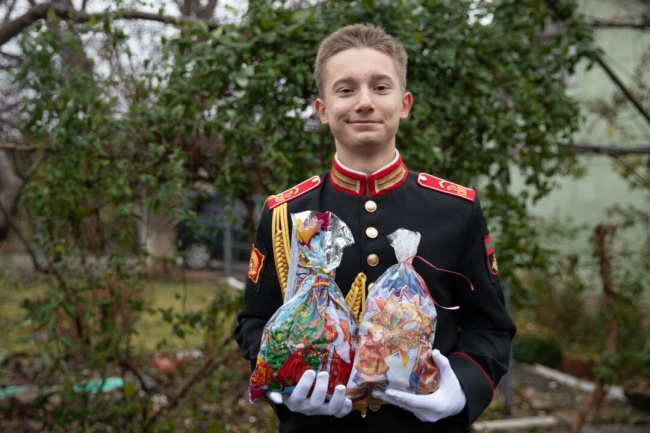 Тирасполь, 28 декабря. /Новости Приднестровья/. Воспитанникам Тираспольского Суворовского военного училища вручили новогодние подарки от Главнокомандующего Вооруженными силами Вадима Красносельского и министра обороны Олега Обручкова. Праздничные презенты получили 276 суворовцев, каждому из них подарок доставили прямо домой. Начальник Суворовского училища Сергей Александров вместе с офицерами проделал путь от Каменского района до Бендер, чтобы лично в руки передать подарки своим подопечным.