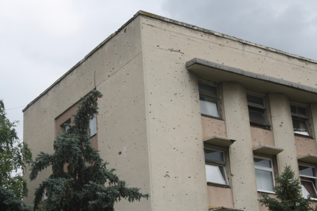 На фото здание Бендерской госадминистрации (бывшего Горисполкома г. Бендеры) со следами от пуль. Фотография сделана 19 июня 2013 года.