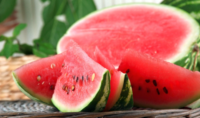 - арбуз должен иметь естественный красный цвет, крупитчатую мякоть;