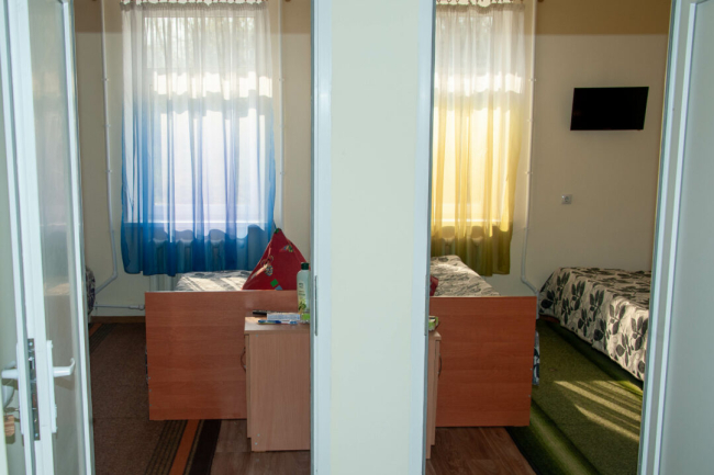 Врачей расселили в спальном корпусе «Дружба». Жить они будут в двухместных номерах по одному человеку. Комнаты оборудованы всем необходимым, есть новые постельные принадлежности и средства личной гигиены, ЖК-телевизоры.