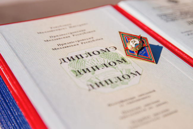 Тирасполь, 26 июня. /Новости Приднестровья/. Выпускникам Военного института Министерства обороны им. генерал-лейтенанта А.И. Лебедя в торжественной обстановке вручили дипломы об окончании военно-учебного учреждения, а также нагрудные знаки. Красные дипломы курсантам, окончившим Военный институт с отличием, вручал министр обороны Олег Обручков.