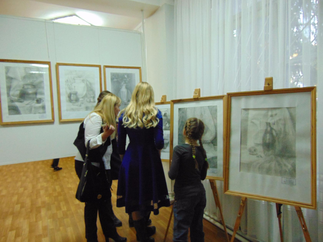 Первыми посетителями выставки стали воспитанники художественной школы и любители изобразительного искусства.