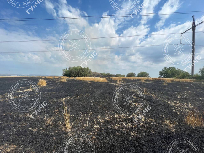За селом Кицканы сгорело 8 га поля с пшеницей