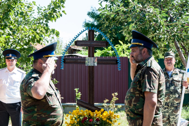 Цветы к Поклонному кресту возложили глава местной госадминистрации Василий Тищенко, атаман Черноморского казачьего войска Приднестровья, полковник Игорь Небейголова, а также представители казачества района.