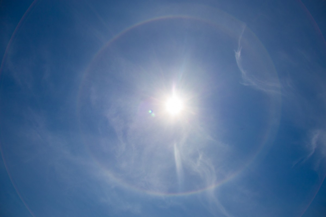 Наблюдать гало на небе можно в любое время года, ночью и днем, вокруг солнца или луны и даже вокруг фонарей или ламп (последнее возможно только в холодную погоду), сообщается на сайте «Ice-halo.net».