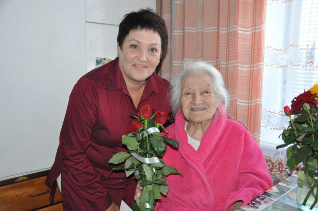 «Софья Трофимовна, восхищаемся вами, вашей красотой и вашим жизнелюбием! В вашей жизни было немало испытаний, но вы все смогли преодолеть благодаря вашему оптимизму. Спасибо вам за то, что вы у нас есть. Вы для нас пример. Желаем вам крепкого здоровья, хорошего настроения и всего наилучшего», - обратилась к имениннице Наталия Кравец.
