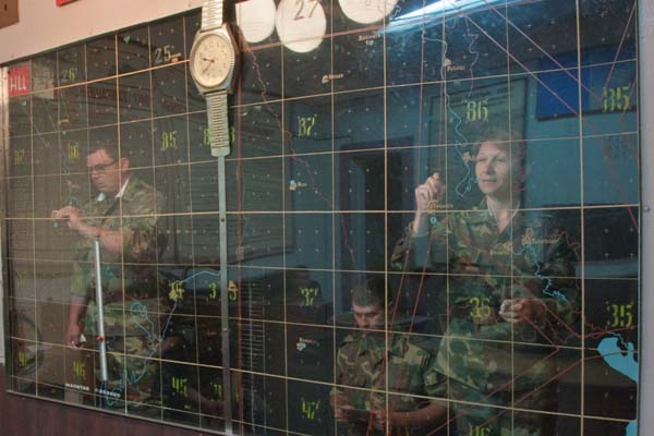 И, действительно, планшетист пишет в зеркальном отражении и справа налево. Это делается для того, чтобы оперативный дежурный, находясь по другую сторону стеклянного экрана, мог считывать данные с планшета обстановки и использовать их в своей работе.