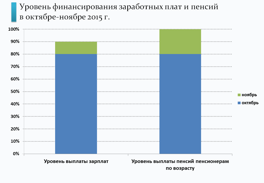 Уровень финансирования заработных плат и пенсий повышен. В частности, пенсии (это касается пенсионеров по возрасту), в соответствии с решением Президента Евгения Шевчука, даже несмотря на сложную экономическую ситуацию будут выплачиваться в полном объёме. Руководство республики пошло на этот шаг в связи с необходимостью компенсировать возросшие расходы граждан в отопительный сезон.