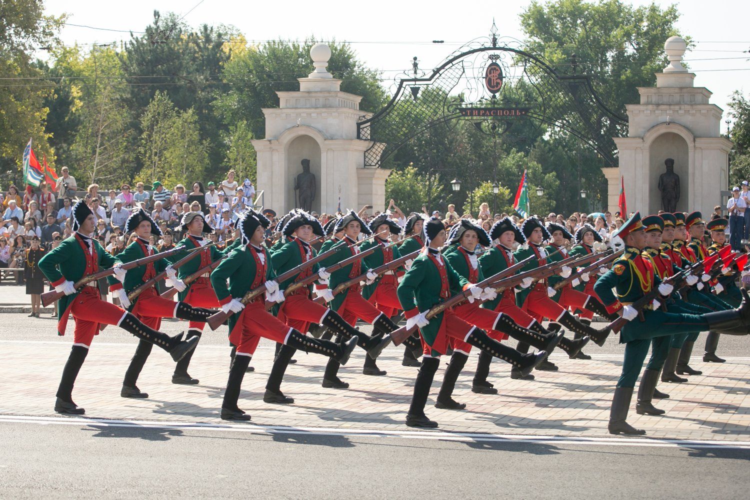 Тирасполь, 2 сентября. /Новости Приднестровья/. Уже традицией празднования Дня Республики стало выступление военнослужащих роты Почетного караула и сводного военного оркестра. В плац-параде задействовано порядка 60 человек – бойцы РПК и учащиеся специализированных учебных заведений: курсанты Военного института Минобороны и ТЮИ МВД, суворовцы и девушки-кадеты.