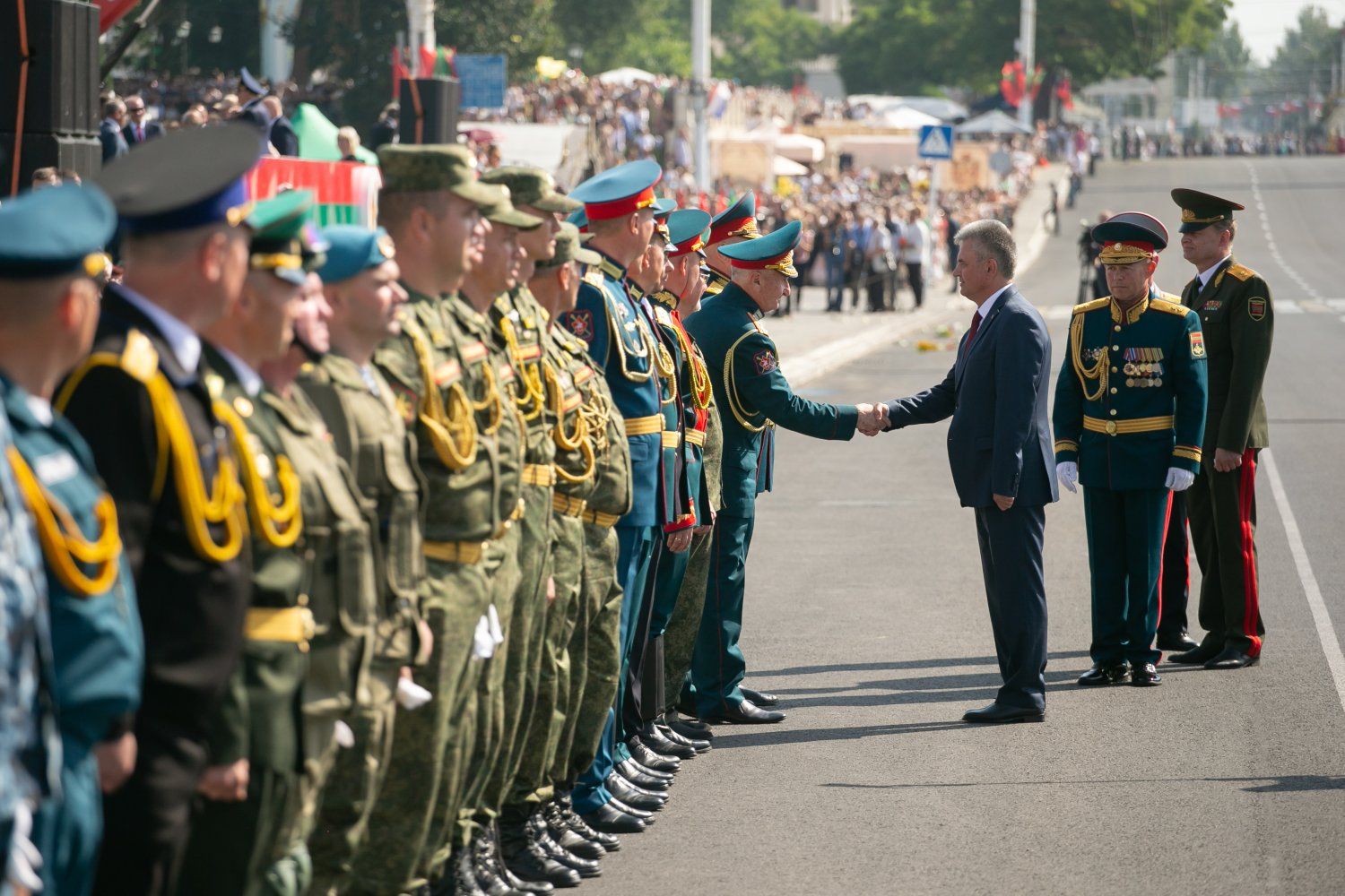 По завершении плац-парада Главнокомандующий Вооруженными силами ПМР Вадим Красносельский спустился с главной трибуны и поблагодарил командиров за службу и отличную подготовку к параду, сообщает пресс-служба главы государства.