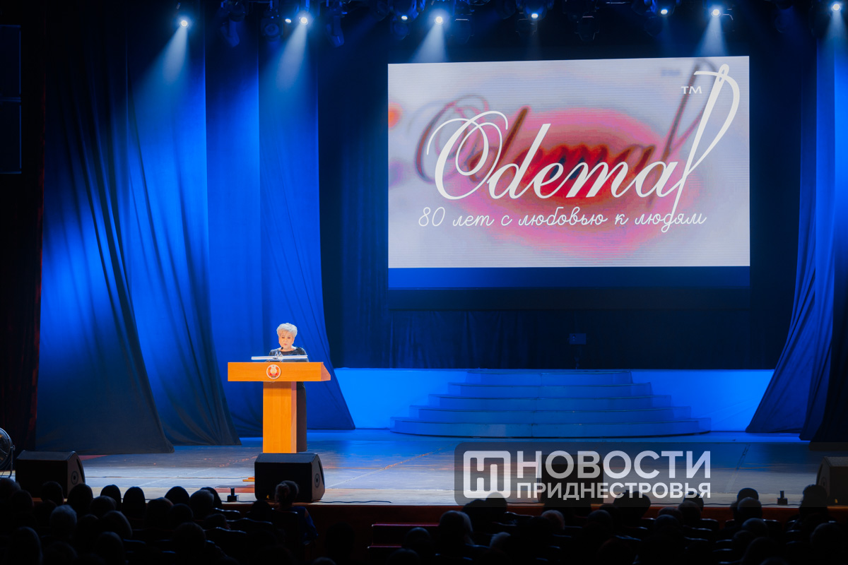 Тирасполь, 6 ноября. /Новости Приднестровья/. 80-летний юбилей швейной фабрики «Одема» им. В. Соловьёвой отметили во Дворце Республики в Тирасполе. Сегодня здесь прошла выставка исторических экспонатов, праздничный концерт, показ новой коллекции и вручение государственных наград заслуженным работникам.