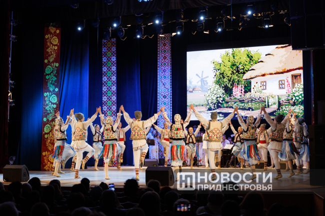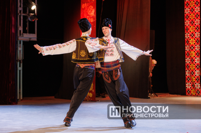 Праздничный вечер открыла «Хора сатулуй». Зрителям показали молдавскую хореографию во всей её красоте – яркие костюмы, отточенные движения, национальная музыка словно перенесли на юг Приднестровья, где зародился этот танец.