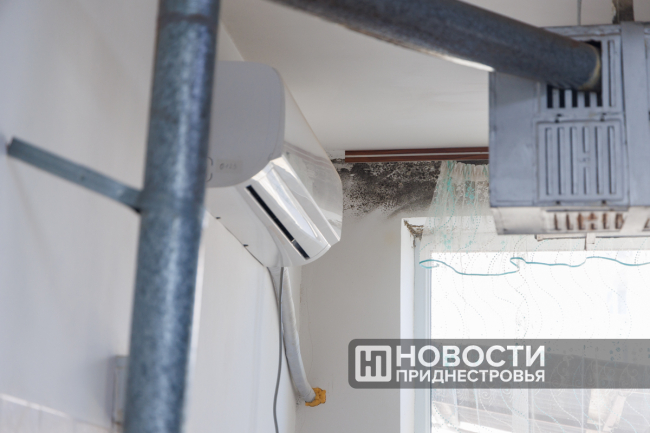 «Штукатурка продолжает сыпаться. Вентиляционные шахты, вентиляционные отверстия собирают воду, в результате образуются лужи. В таких условиях детям заниматься небезопасно», - говорит директор.
