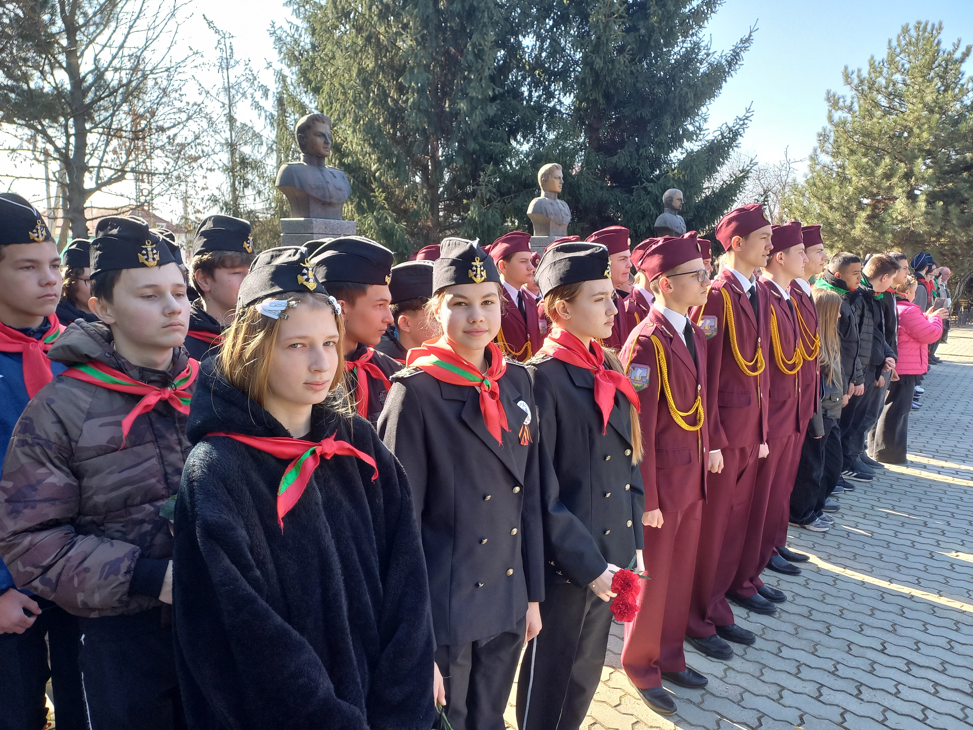 На мероприятии присутствовал военный руководитель школы № 4 Фёдор Поляков. Он рассказал юнармейскому отряду, что на дубоссарском Мемориале Славы захоронены и выпускники школы, погибшие 14 марта 1992 года на Роговской развилке, – это Борис Капкан и Игорь Бочко.