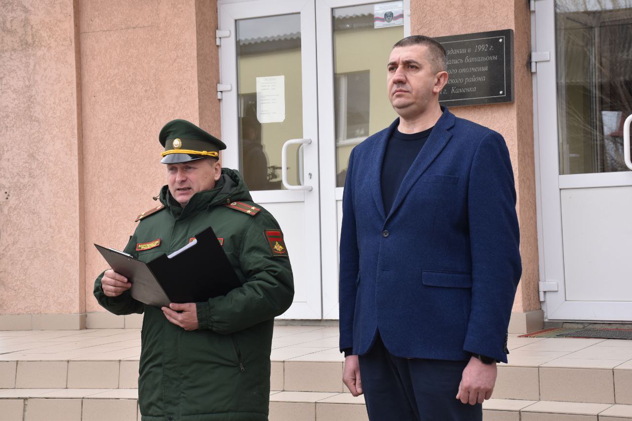 Митинг, посвящённый 34-й годовщине со дня создания Народного ополчения ПМР, провели сегодня и в Каменке. По традиции мероприятие прошло у здания, где в 1992 году формировались батальоны Народного ополчения Каменского района. Об этом напоминает мемориальная плита, установленная на фасаде здания.