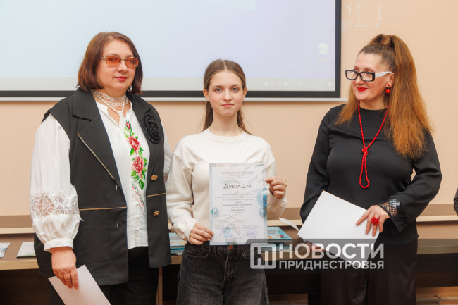 Татьяна Юзленко - преподаватель украинского языка и литературы Дубоссарской гимназии № 1 - рассказала, что от её учебного заведения представлено 12 работ, а также её собственный мультфильм на молдавском языке, который занял 2 место.