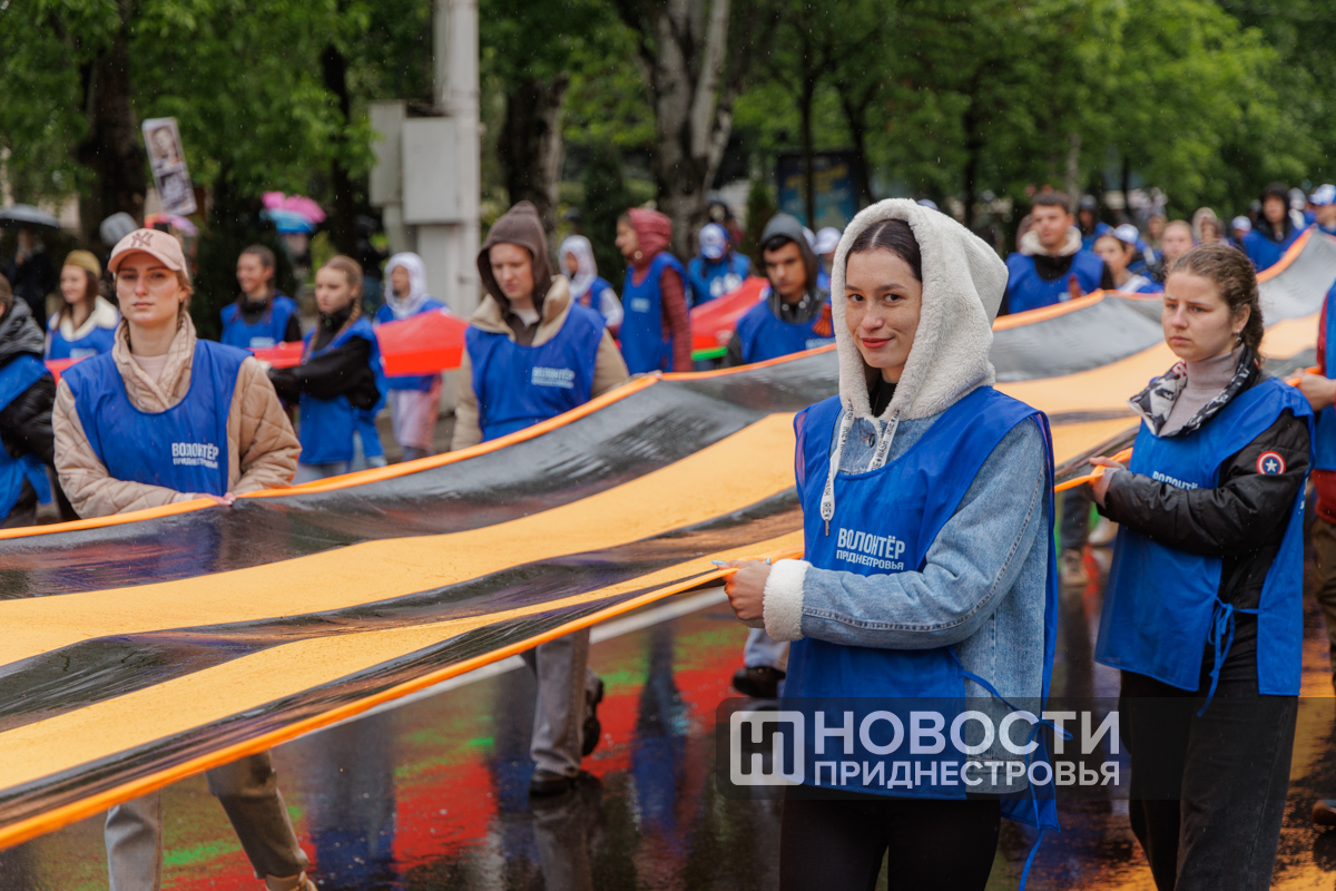 9 Мая по главной улице Тирасполя пройдут тысячи людей с портретами ветеранов Великой Отечественной войны. А волонтеры пронесут два больших стометровых полотна - в цветах флага ПМР и Георгиевской ленты.