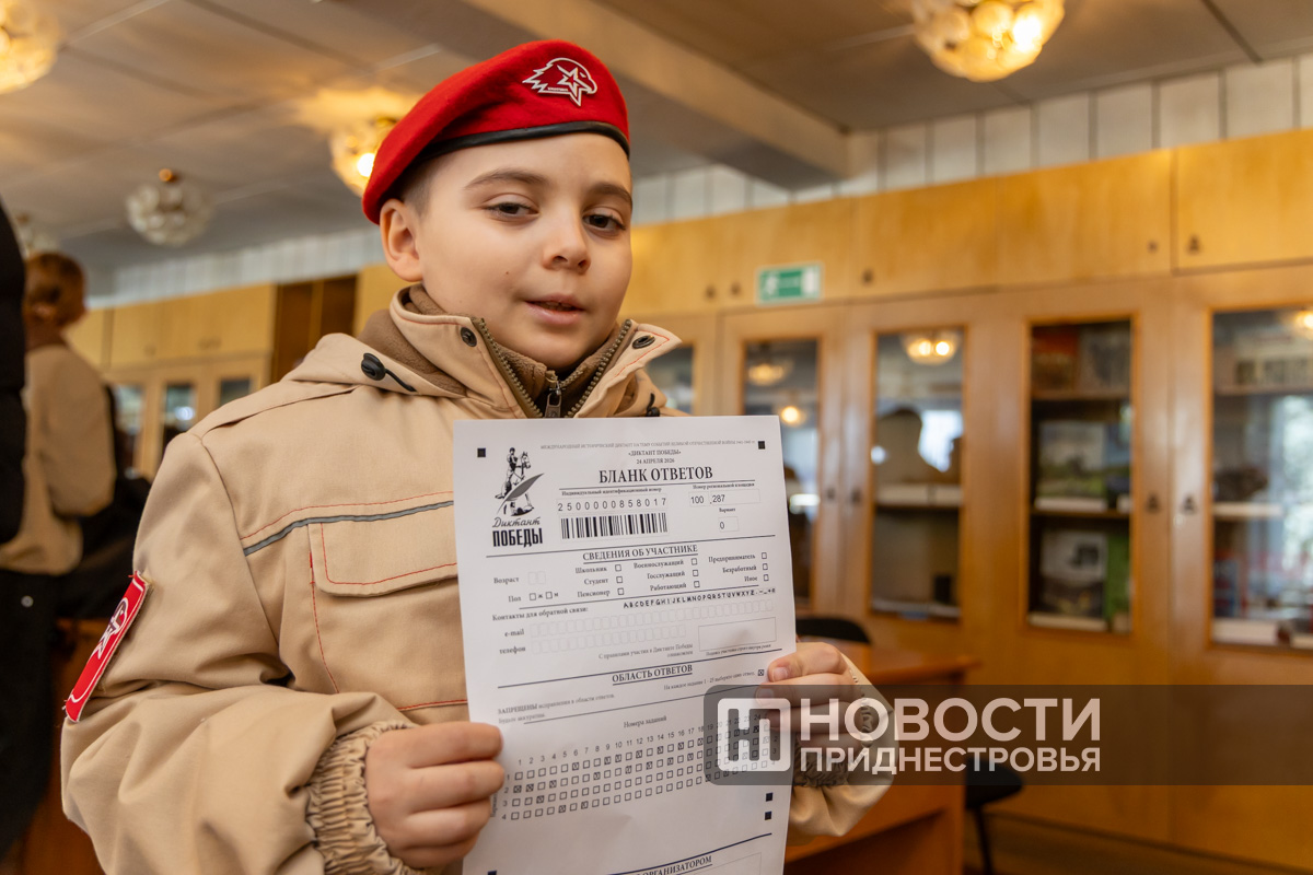 Тирасполь, 24 апреля. /Новости Приднестровья/. Сегодня в России и во многих странах мира проходит акция «Диктант Победы». Приднестровцы тоже участвуют в ней. Площадки развёрнуты во всех городах и районах республики. В Тирасполе – традиционно в центральной городской библиотеке им. А. С. Пушкина. В читальный зал пришли: несколько десятков старшеклассников из школы № 11, юнармейцы и молодёжь из Военно-спортивного клуба «Искра».