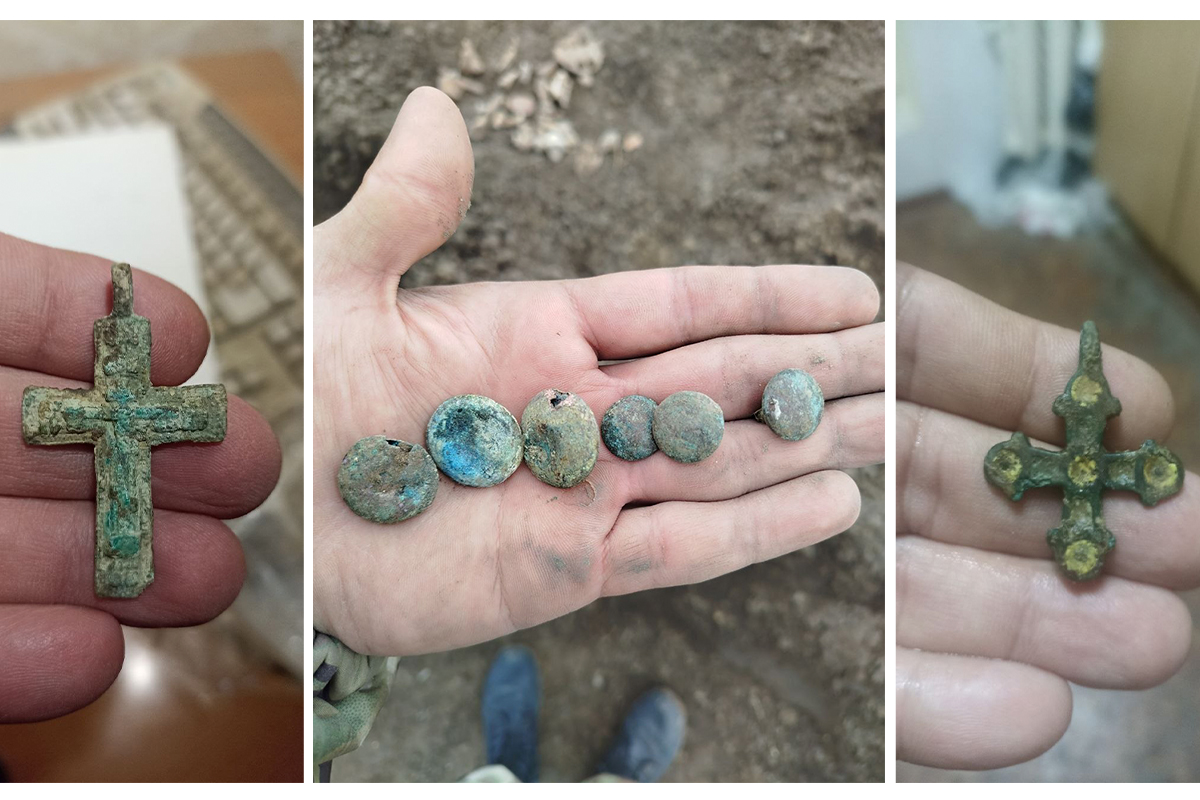 Среди изученных артефактов медные нательные крестики образца XVIII столетия и засевшие в костях погребённых свинцовые сферические пули, характерные для XVIII – начала XIX веков. Кроме того, найдена керамическая курительная трубка, характерная для XVII-XVIII веков.