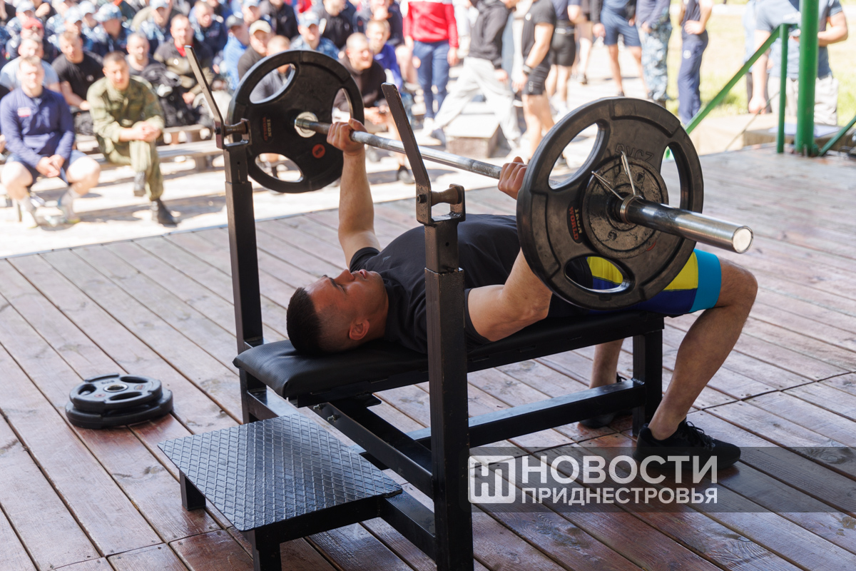 На сценической площадке мужчины соревновались в русском жиме штанги на максимальное количество повторений. Результаты по большинству дисциплин шли в командный зачёт, победителей выявляли по сумме результатов или показанному времени.