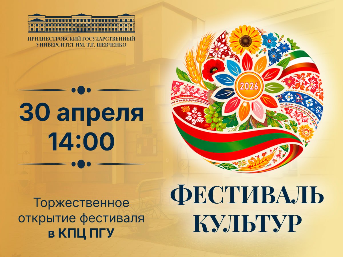 Тирасполь, 29 апреля. /Новости Приднестровья/. 30 апреля в 14 часов в Культурно-просветительском центре Приднестровского государственного университета имени Т.Г. Шевченко будет торжественно открыт Фестиваль культур - 2026.