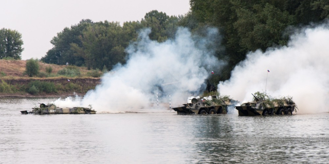 Бронетехника ОГРВ и ПМР преодолела реку, чтобы блокировать и ликвидировать условных «террористов»