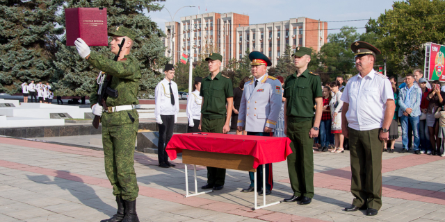 Новобранцы Тираспольского гарнизона присягнули на верность Родине Торжественная церемония прошла в одной из воинских частей Вооруженных сил 15 Сен., 2018, 12:20 Безопасность присяга