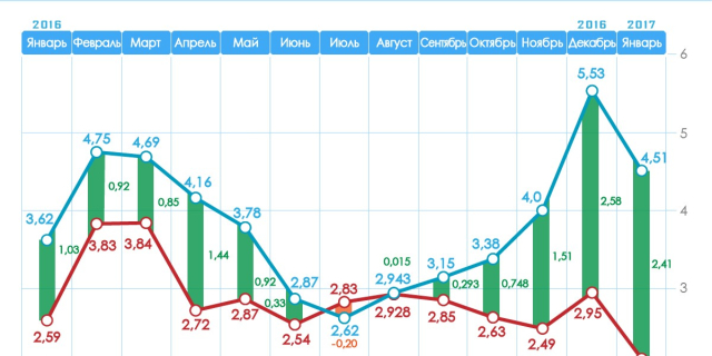 Дефицит госбюджета увеличивается В январе 2017 года дыра в бюджете достигла почти 40% 22 Фев., 2017, 16:43 Инфографика Бюджет Деньги