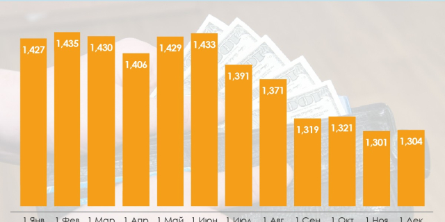 С октября по ноябрь количество наличных денег в обращении уменьшилось на 1,1%, средств в иностранной валюте – на 2%, а вот объём безналичных средств, наоборот, вырос на 2,2%