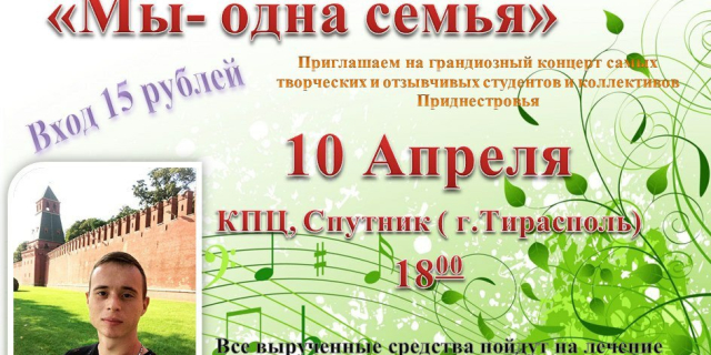 31 марта в Дубоссарах пройдет благотворительная акция в поддержку Саши Булан