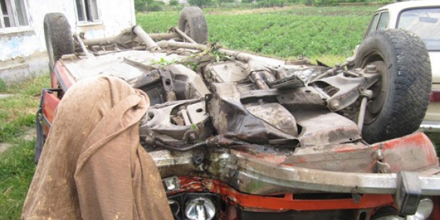 Мужчина сидел на бордюре, в то время как на него наехал автомобиль
