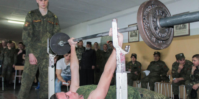 В Вооружённых силах прошёл первый турнир по жиму штанги лёжа Спортсмены соревновались в девяти весовых категориях, в каждой из которых определяли тройку призёров 11 Апр., 2018, 18:08 Спорт Минобороны