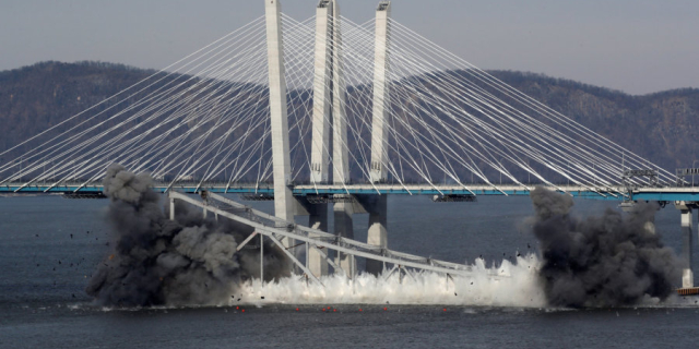 В Нью-Йорке взорвали старый мост через Гудзон Tappan Zee открыли в 1955 году. В 2017-м рядом с ним был построен новый мост 16 Янв., 2019, 21:43 В мире мост