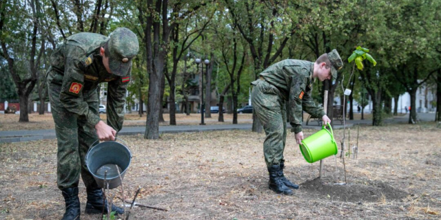 Вместе с волонтёрами они поливали деревья в столичном Покровском парке