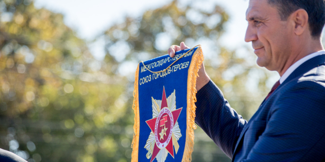 Главе Бендер вручили штандарт Межгосударственного союза городов-героев В одном из старейших городов республики продолжаются праздничные мероприятия к юбилею первого летописного упоминания 08 Окт., 2018, 17:12 Общество Бендеры
