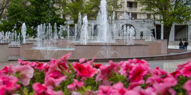 Цветы украсили скверы возле кинотеатра Горького и Дворца культуры им. Ткаченко, набережную и площадь Освобождения