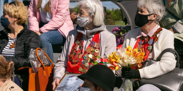 Из-за пандемии вместо традиционного шествия люди вышли с фотографиями фронтовиков во дворы домов